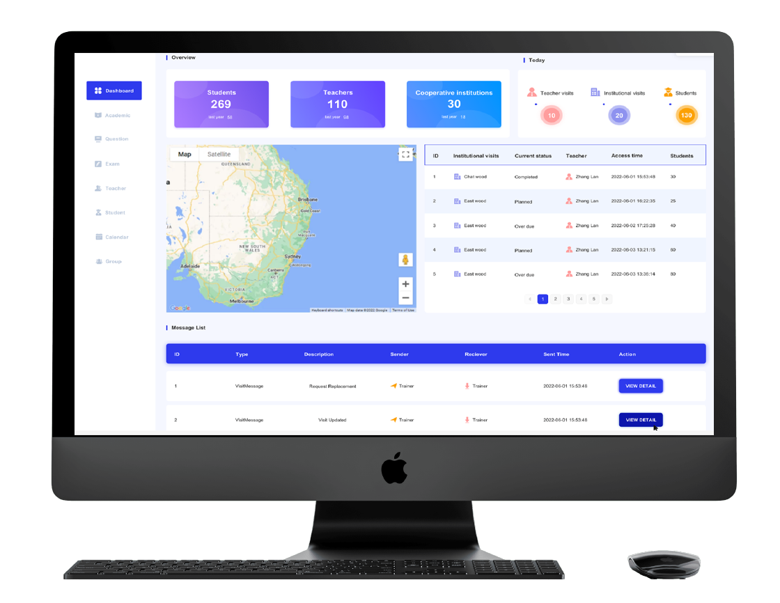 We develop an online testing system for educational institutes. This solution comprise of three parts: Student terminal, Teacher port and Administration hub. Teacher port will be used by teachers to generate test question and review student performance, student terminal is used by student to conduct an exam, and Administration hub is to manage all testing questions and automatically evaluate the students’ test, and generate students’ reports.